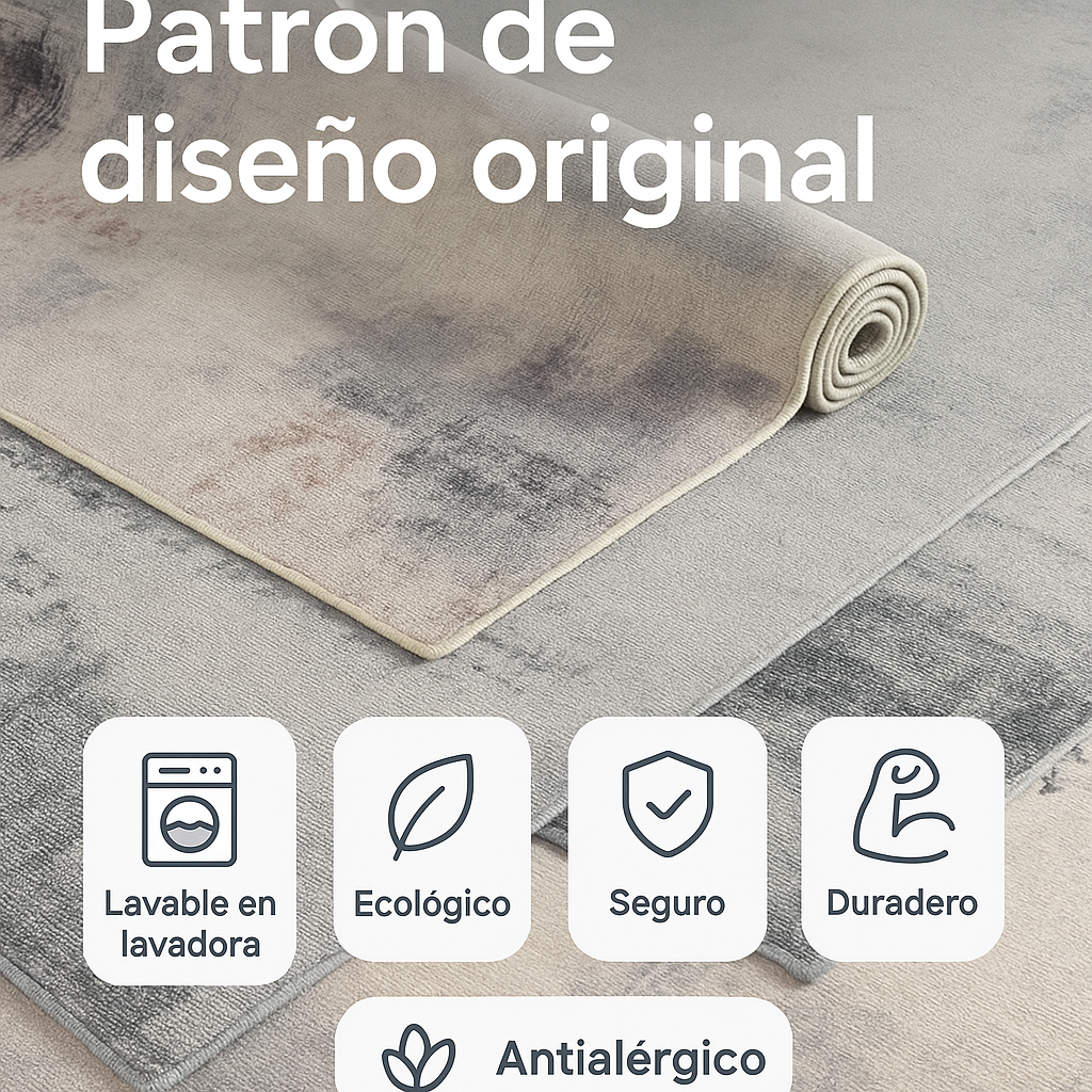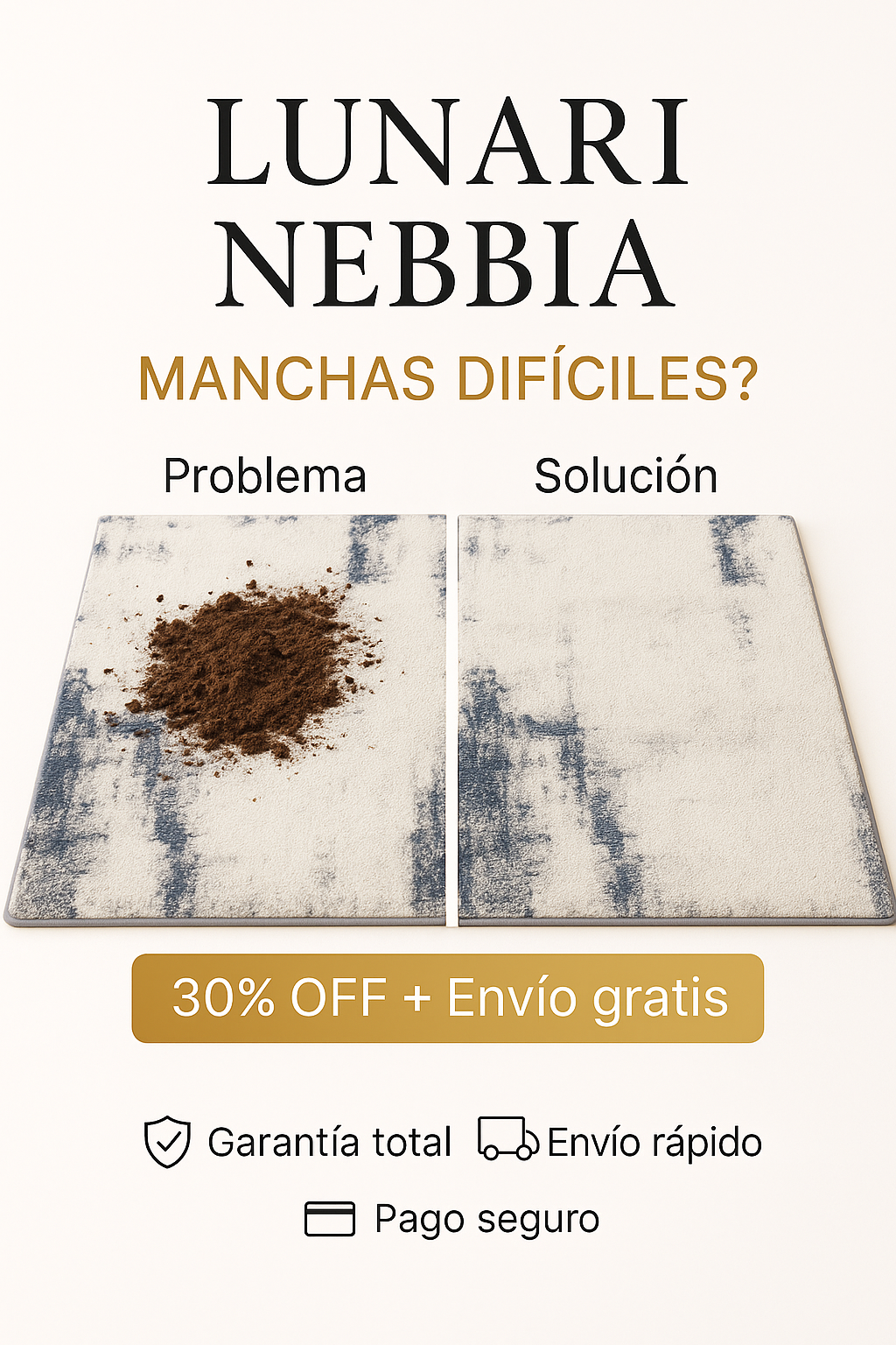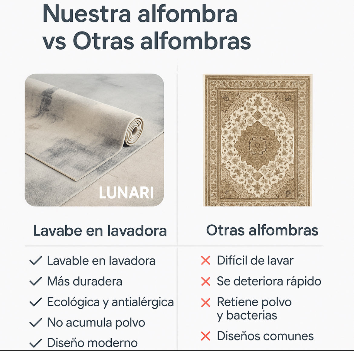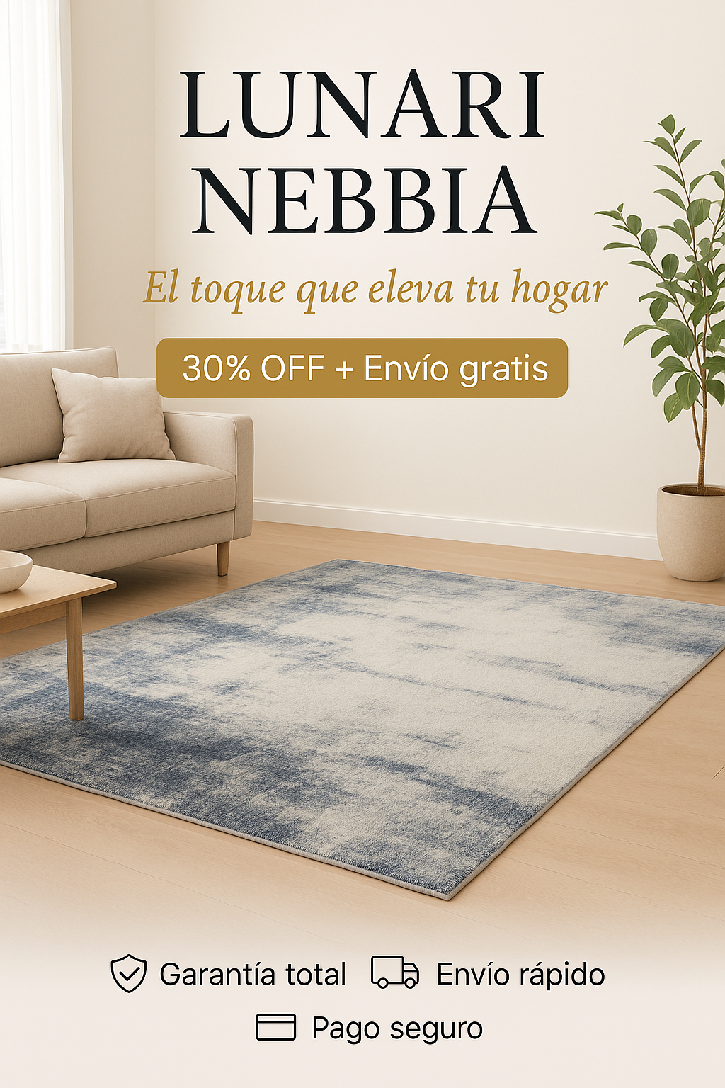 Aunque no es cama ni almohada, el tapete de cuarto complementa perfecto con la cama Lunari. Textura suave y diseño que eleva el espacio. Buena compra.